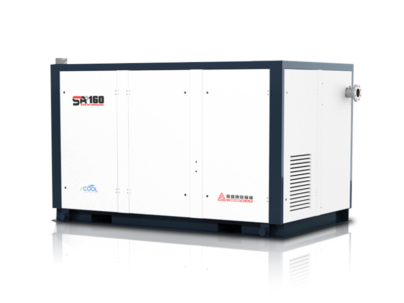 SA+ series two-stage compression screw air compressors, screw rotors with advanced patented tooth profile design, equipped with precision-machined one-piece body, become air compressor models with integrated technology. Good efficiency, low energy consumption performance, horsepower from 5.5kW to 400kW, in line with energy efficiency standards. Advanced and considerately designed cooling flow field, precision filtration and degreasing system, and balanced low-vibration, low-noise overall engineering device, easy to maintain and maintain Space planning, intelligent human-machine interface control system, plus computer detection and self-diagnosis and other security protections It is designed to become a dedicated screw air compressor for industrial grades in the market, driving various industrial applications. Two-stage compression compression screw air compressor, because the high-temperature air after single-stage compression is cooled by oil injection, the air is isobarically compressed, thereby reducing the double-stage suction temperature, and the entire compression process is close to isothermal compression, reducing compression power consumption . The pressure ratio of each stage of the double-stage compression is reduced, so the leakage of the seal between the rotors is greatly reduced, and the volumetric efficiency of the head is improved; compared with the single-stage compression of the same power air compressor, the double-stage compression can theoretically increase the displacement by up to 8~15% , correspondingly saving 8~15% of energy consumption. When running at full load for a long time, the CP value is good. In our practical case, combined with comprehensive centralized control, frequency conversion, elimination of unreasonable use and other comprehensive measures, the new compressed air system can save up to 40% of electricity costs compared to the original system. In addition to energy saving, double-stage compression also has the characteristics of stability and reliability. The working pressure is achieved through two-stage compression. The pressure ratio of each stage is small, which means that the pressure difference between the intake and exhaust of each stage of the rotor is small, the main components are under small stress, and the thermal load is low. . At the same time, it can also reduce the load of the bearing, prolong the service life of the main engine, and ensure the reliable operation of the whole machine.