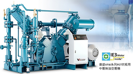The clean oil-free high-pressure air compressor of Fusheng VFW series products is specially used for the PET bottle blowing industry. After long-term operation and testing in various occasions, it has the characteristics of reliability and stability, and can stably supply the compressed air required for the blowing process. The whole series is equipped with 50~300HP, and the exhaust pressure range is 25~40 kg/cm2, which can meet the needs of blowing air volume from small to large. The whole series provides a user-friendly operation interface system, optional touch panel and PLC control system, with various alarm and safety functions, to control the compressor, and the monitoring function can display the running parameters, status and service instructions Provides users with important information related to regular preventive maintenance. VFW series is 100% oil-free in the air compression process, providing users with completely oil-free and clean compressed air. The material of the suction and exhaust valve group is SUS, with high strength and long life. The piston material is aluminum alloy design, which can effectively reduce weight and balance. With defogging design, condensate water separation effect, higher compression efficiency.
