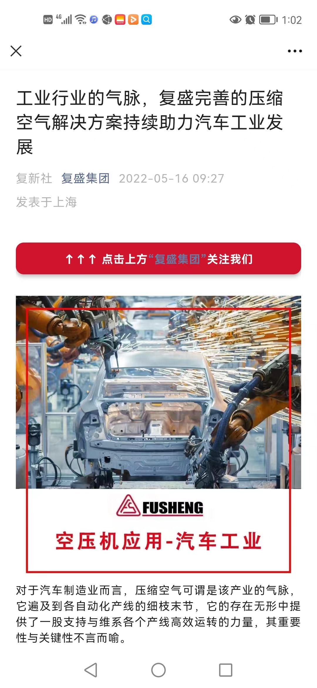 荣景盛的汽车行业空压机及压缩空气解决方案涵盖微油螺杆空压机、无油螺杆空压机、离心空压机、低压螺杆空压机、及螺杆鼓风机、磁悬浮风机等。