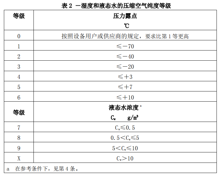 二.技术规范中对于压缩空气含水量的分级(ISO-8573.1-2010标准中的规定)