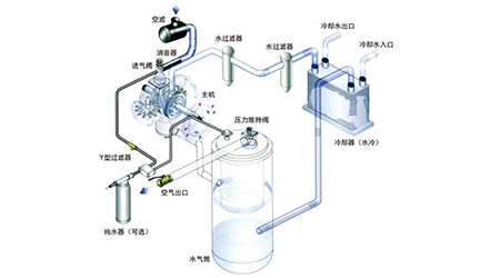 理想等溫壓縮:潤滑水注入壓縮室,冷卻壓縮空氣所產生之熱能,及形成水膜藉以密封轉子間隙,防止空氣回漏,理想之等溫壓縮達到達成好效率。理論上,當20°C的空氣
